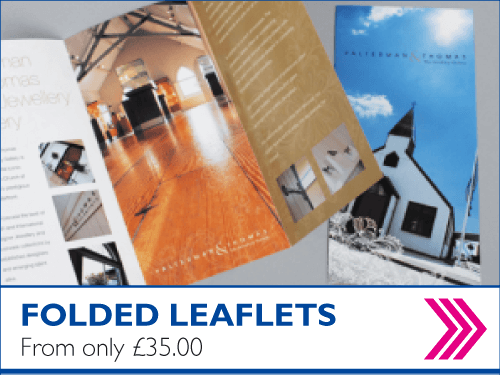 Folded leaflets make great mini brochures. They are easier to handle, cheaper than a booklet and cheaper to mail out (if you follow Royal Mails guidelines). If you have more to say than you can fit on a leaflet, get a bigger leaflet and fold it. All our leaflets are printed in full colour. We can fold in half, roll fold, z fold, cross fold, map fold and many others. Our folded leaflets range from A5 folded, 2 panel DL's folded, 3 panel A6 portrait, 2 panel A5 landscape, 4 panel portrait A6, A4 folded, A3 folded, A2 folded, A1 folded, super A1 folded, 5 panel A6 folded, 4 panel portrait DL, 2 panel square, 3 panel portrait A5, 3 panel landscape A5, 2 panel wide, 5 panel portrait DL, 4 panel portrait A5, 2 panel A4 landscape, 3 panel landscape A4, 3 panel portrait A4 and 4 panel portrait A4 folded leaflets. We print our litho folded leaflets onto either a 150gsm gloss, 170gsm silk, 100gsm recycled, 115gsm gloss, 160gsm recycled, 100gsm silk folded leaflets, we have a digital printing option ideal for runs of 50-250 for folded leaflets onto either a 150gsm gloss or 170gsm silk folded leaflets.