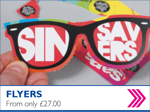 Flyer printing is what we do best. With a huge amount of options like flyer sizes and papers. Flyers are thicker than a leaflet and ideal to give your message more weight. Add a cut-out shape of your choice to make your flyer really unique. Whatever the use, we have a flyer to suit your business. Our flyer sizes start from A7, A6, DL, A5, A4 to A3. For 280gsm gloss flyers, 280gsm silk flyers, 250gsm gloss laminated flyers, 250gsm matt laminated flyers, 280gsm shaped/die cut flyers, 250gsm matt laminated flyers, shaped/die cut, 250gsm matt laminated flyers with spot uv highlights and shaped/die cut, 250gsm spot uv flyers, 250gsm gloss laminated shaped/die cut flyers.